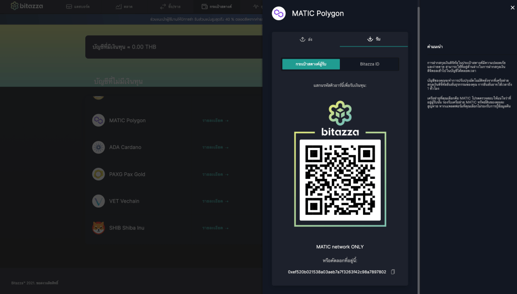หลังจากได้ Matic มาแล้วก็ตาม Step เดิมเลยครับไปเอา Matic Address มาจาก Exchange ครับในตอนนี้ Matic จะสามารถถอนได้จากแค่ Binance และ Bitazza เท่านั้นนะครับ เชคให้ดีว่า Network เป็น MATIC(polygon) ด้วยนะครับ