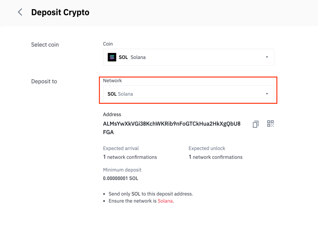 เปลี่ยน Wallet กันหน่อยเดี๋ยวจะเบื่อกัน 555 ก็เหมือนเดิมครับไปเอา Solana address จาก exchange มาโลดด สำหรับ Binance อย่าลืมเชคให้ดีว่า Network เป็น SOLANA ด้วยนะครับแต่ exchange อื่นๆไม่มีให้เลือก network เพราะ solana มี network เดียว