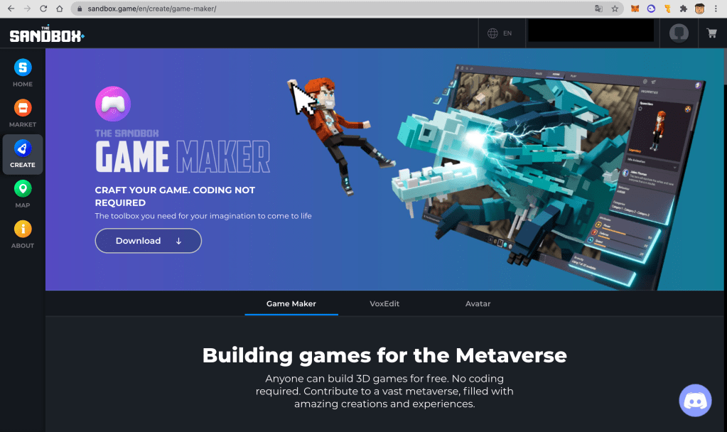 นอกจากนั้นแล้ว The Sandbox ยังมีโปรแกรมสำหรับสร้างสิ่งของต่างๆภายในเกมด้วยโดยเราสามารถโหลดมาใช้ได้เลยฟรีๆบนหน้าเว็บเขาเลยครับ