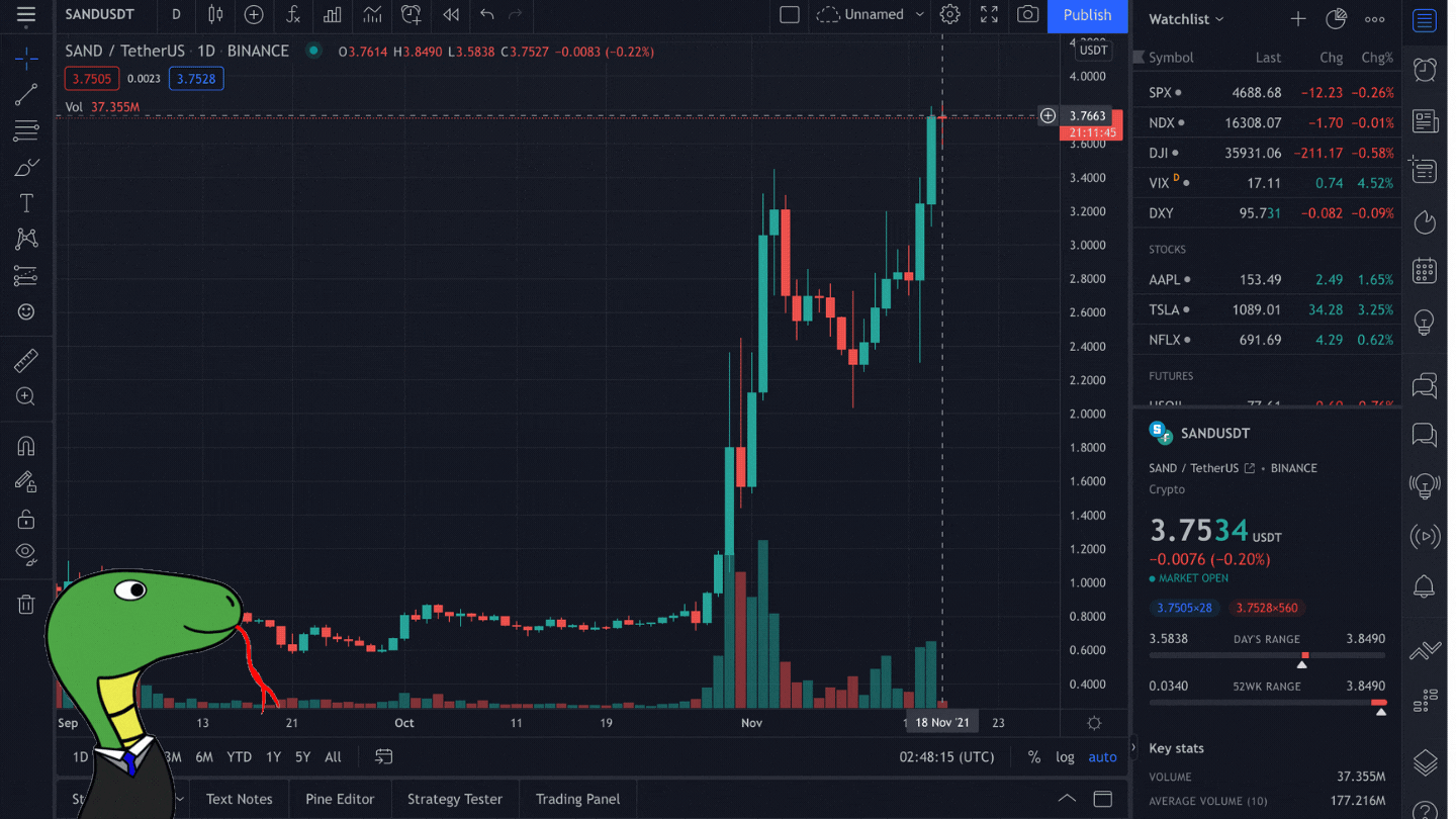 เกริ่นกันสั้นๆก่อนๆสำหรับท่านที่ยังไม่รู้ว่า The Sandbox คือะไร The Sanbox เป็น Metaverse บน Ethereum network ผู้เล่นสามารถเข้าไปเล่นหรือไปเป็นเจ้าของที่ดิน สร้างเกม สร้างสิ่งปลูกสร้าง หรือสิ่งของในเกมและนำมาซื้อขายได้ด้วย โดยตัวเกมจะมีลักษณะเป็น Block คล้ายๆ Minecraft มีเหรียญประจำระบบคือเหรียญ SAND ปัจจุบัน 1 SAND อยู่ที่ 120+ บาท (ราคา ณ วันที่ 18 พ.ย. 2021)