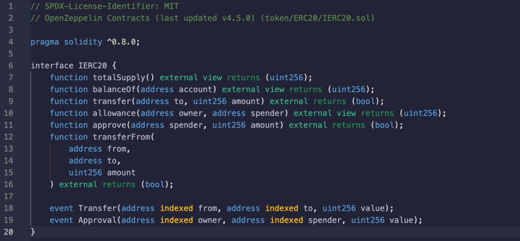 เป็นมาตรฐานสำหรับการสร้าง Token โดยจะมีชุดคำสั่งพื้นฐานดังนี้