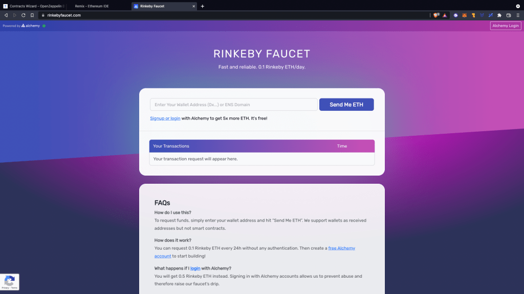 ในบทความนี้เราจะให้ลอง deploy ขึ้น Rinkeby network ใครยังไม่มี ETH ใน network สามารถไปรับฟรี 0.1 ETH ได้ที่ link นี้เล้ย